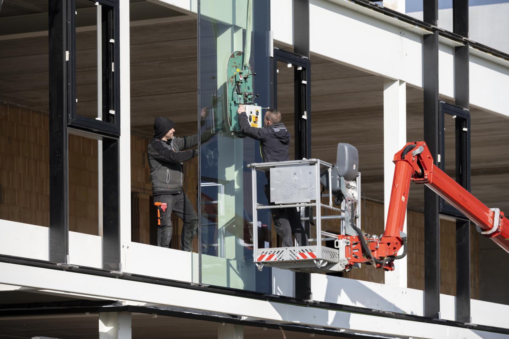 Un sourire radieux aux lèvres, les employés de Dochy Glas ont contemplé leur futur lieu de travail avec showroom lumineux à Furnes. Un projet dont nous sommes particulièrement fiers car, outre les fondations et le gros œuvre, les VDBuzzers ont pris en charge l’aménagement des abords et la finition de l’immeuble de bureaux, chape comprise.