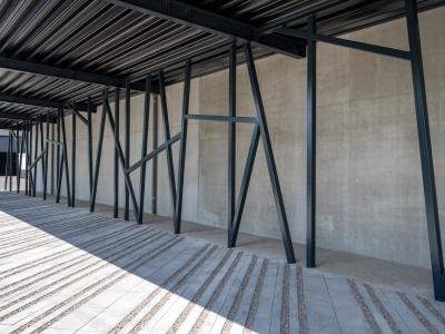Een loopbrug en technische koker verbinden het nieuwe gebouw met de bestaande gebouwen, wat zorgt voor een vlotte interne logistiek.